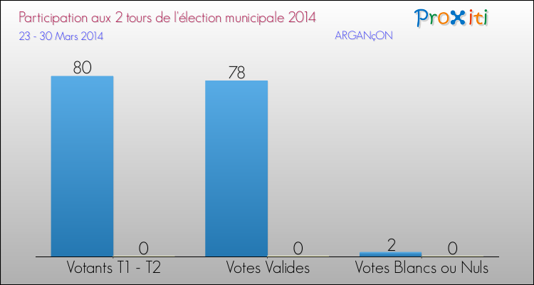 Le taux de participation à Argançon est donc de 0% pour ce second tour et le taux d'abstention a donc été de 0%.