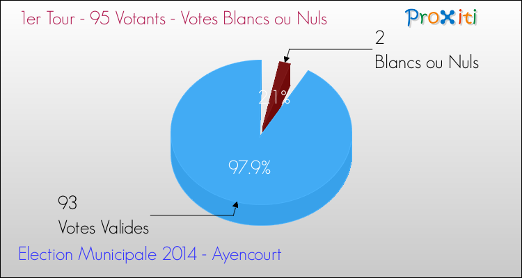 Au moment du dépouillement du scrutin, 2 bulletins ont été considérés comme blancs ou nuls (2.11%).