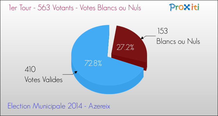 Au moment du dépouillement du scrutin, 153 bulletins ont été considérés comme blancs ou nuls (27.18%).