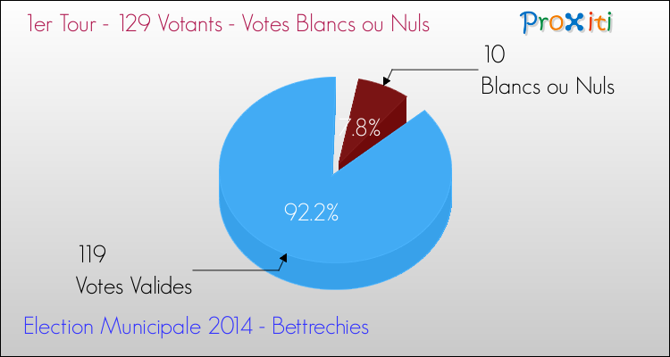 Au moment du dépouillement du scrutin, 10 bulletins ont été considérés comme blancs ou nuls (7.75%).