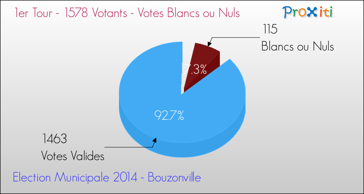Au moment du dépouillement du scrutin, 115 bulletins ont été considérés comme blancs ou nuls (7.29%).