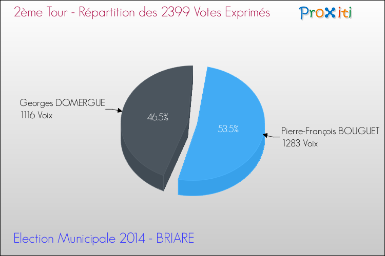 | M. Georges DOMERGUE - Liste Divers droite BRIARE, UNE EQUIPE, | 1116 Voix | 46.51% | 26.56% | 6 | 2 |