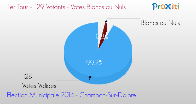 Au moment du dépouillement du scrutin, 1 bulletins ont été considérés comme blancs ou nuls (0.78%).
