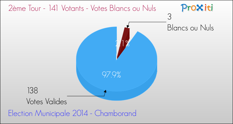 Au moment du dépouillement du scrutin, 3 bulletins ont été considérés comme blancs ou nuls (2.13%).