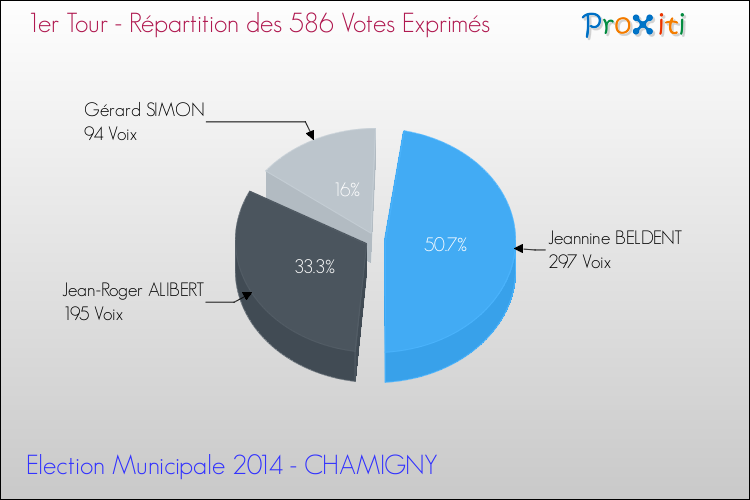 Le graphique ci dessous représente la répartition des 586 votes exprimés qui sont les seuls utiles pour le décompte final.