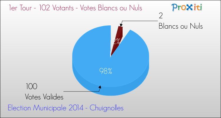 Au moment du dépouillement du scrutin, 2 bulletins ont été considérés comme blancs ou nuls (1.96%).