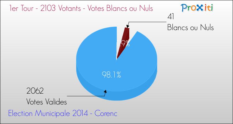 Au moment du dépouillement du scrutin, 41 bulletins ont été considérés comme blancs ou nuls (1.95%).