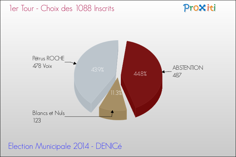 Le taux de participation à Denicé est donc de 55.24% pour ce premier tour et le taux d'abstention dont tout le monde vous a rebattu les oreilles a donc été de 44.76%.