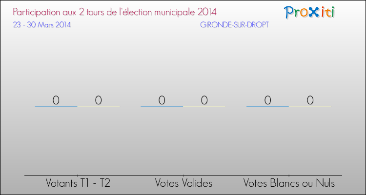 Le taux de participation à Gironde-sur-Dropt est donc de 0% pour ce second tour et le taux d'abstention a donc été de 0%.