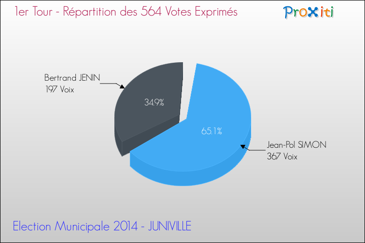 Le graphique ci dessous représente la répartition des 564 votes exprimés qui sont les seuls utiles pour le décompte final.