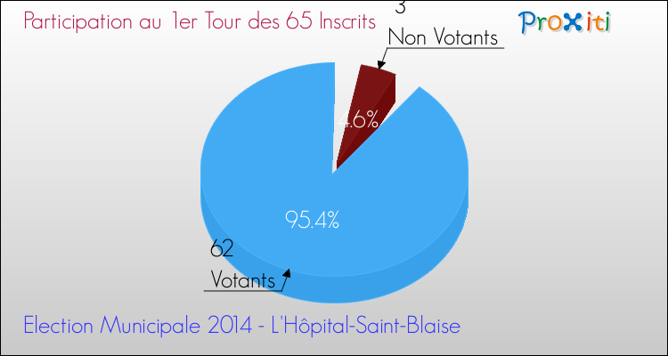 Le dimanche 23 mars dernier, pour le premier tour des élections municipales à L' Hôpital-Saint-Blaise, sur les 65 inscrits pouvant voter, 62 votants se sont déplacés pour choisir leurs prochains élus.