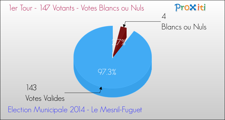 Le dimanche 23 mars dernier, pour le premier tour des élections municipales à Le Mesnil-Fuguet, sur les 157 inscrits pouvant voter, 147 votants se sont déplacés pour choisir leurs prochains élus.