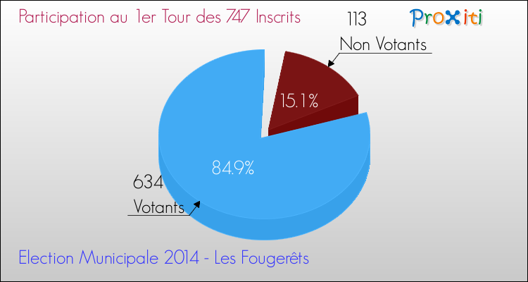 Le taux de participation à Les Fougerêts est donc de 84.87% pour ce premier tour et le taux d'abstention dont tout le monde vous a rebattu les oreilles a donc été de 15.13%.