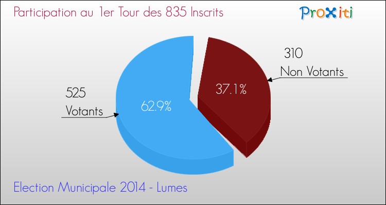 Le dimanche 23 mars dernier, pour le premier tour des élections municipales à Lumes, sur les 835 inscrits pouvant voter, 525 votants se sont déplacés pour choisir leurs prochains élus.