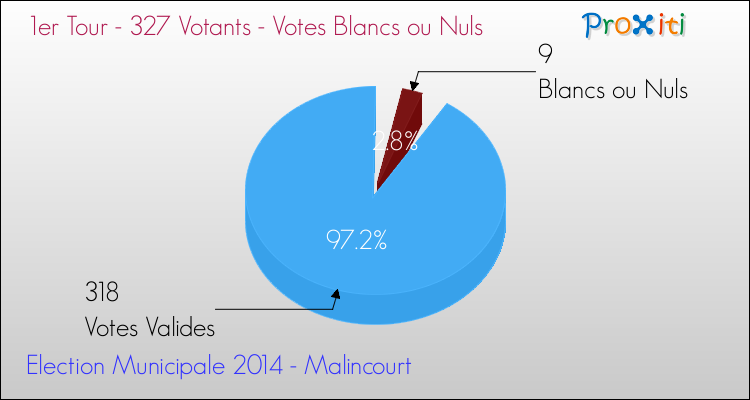 Au moment du dépouillement du scrutin, 9 bulletins ont été considérés comme blancs ou nuls (2.75%).