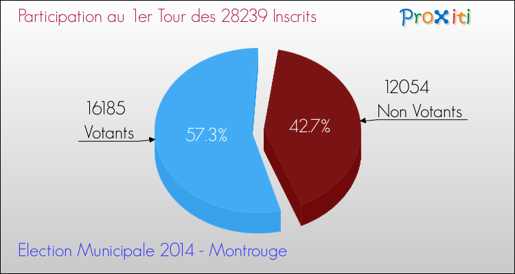 Le dimanche 23 mars dernier, pour le premier tour des élections municipales à Montrouge, sur les 28239 inscrits pouvant voter, 16185 votants se sont déplacés pour choisir leurs prochains élus.