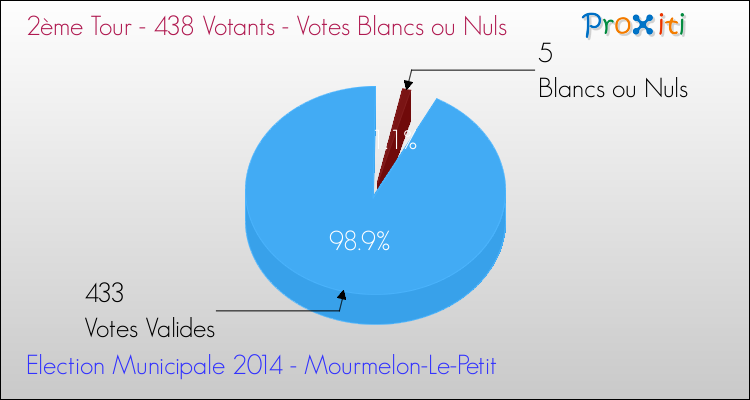 Au moment du dépouillement du scrutin, 5 bulletins ont été considérés comme blancs ou nuls (1.14%).