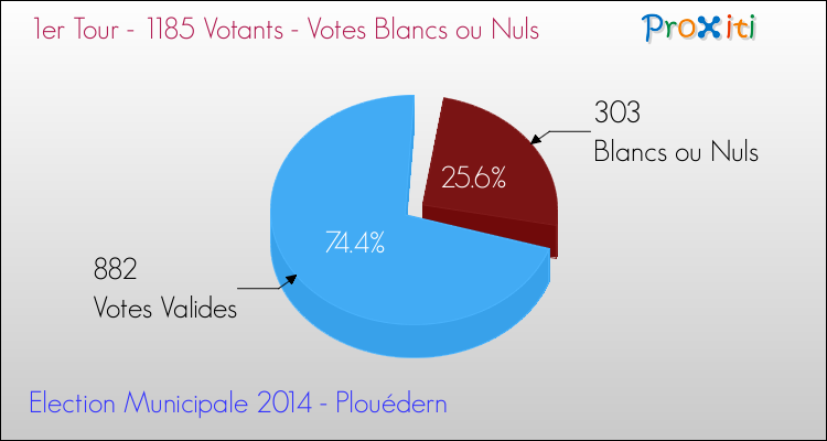 Au moment du dépouillement du scrutin, 303 bulletins ont été considérés comme blancs ou nuls (25.57%).