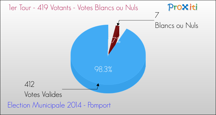 Au moment du dépouillement du scrutin, 7 bulletins ont été considérés comme blancs ou nuls (1.67%).