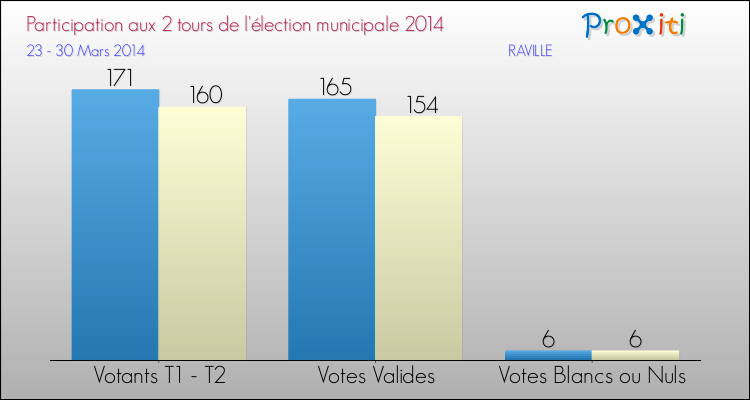 Le taux de participation à Raville est donc de 84.66% pour ce second tour et le taux d'abstention a donc été de 15.34%.