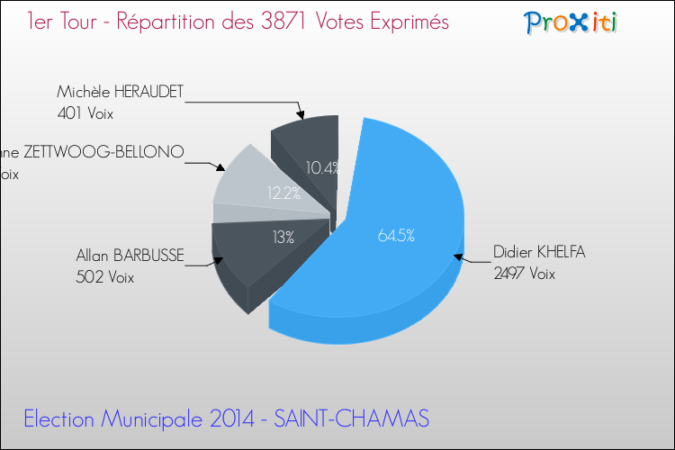 | M. Didier KHELFA - Liste Divers droite VIVRE SAINT-CHAMAS | 2497 Voix | 64.5% | 41.83% | 25 | 3 |