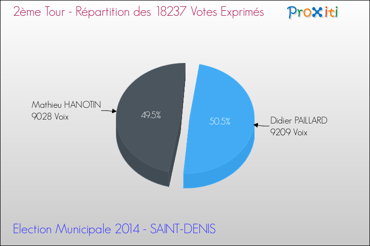Le dimanche 30 mars dernier, pour le second tour des élections municipales à Saint-Denis, sur les 43200 inscrits pouvant voter, 19354 votants se sont déplacés pour choisir leurs prochains élus.