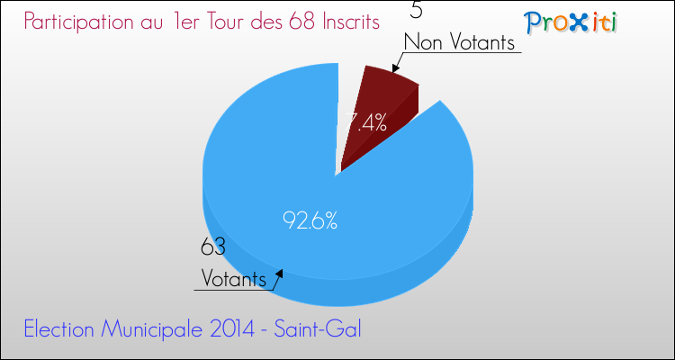 Le dimanche 23 mars dernier, pour le premier tour des élections municipales à Saint-Gal, sur les 68 inscrits pouvant voter, 63 votants se sont déplacés pour choisir leurs prochains élus.