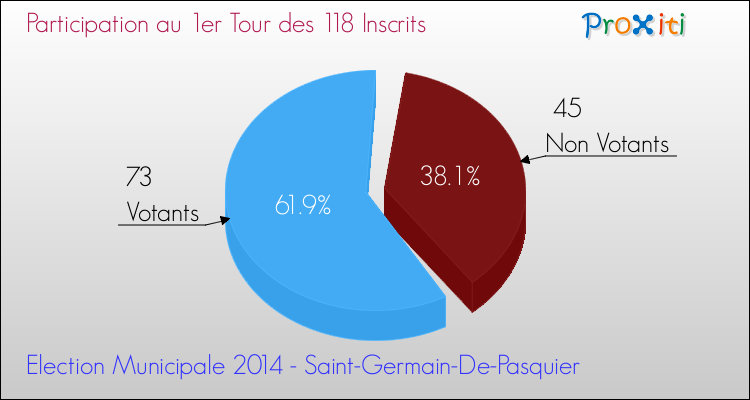 Le dimanche 23 mars dernier, pour le premier tour des élections municipales à Saint-Germain-de-Pasquier, sur les 118 inscrits pouvant voter, 73 votants se sont déplacés pour choisir leurs prochains élus.