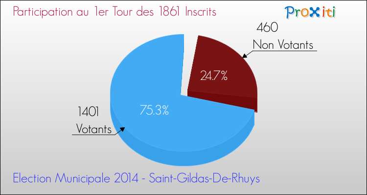 Le taux de participation à Saint-Gildas-de-Rhuys est donc de 75.28% pour ce premier tour et le taux d'abstention dont tout le monde vous a rebattu les oreilles a donc été de 24.72%.