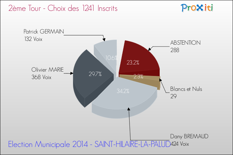 Le dimanche 30 mars dernier, pour le second tour des élections municipales à Saint-Hilaire-la-Palud, sur les 1241 inscrits pouvant voter, 953 votants se sont déplacés pour choisir leurs prochains élus.