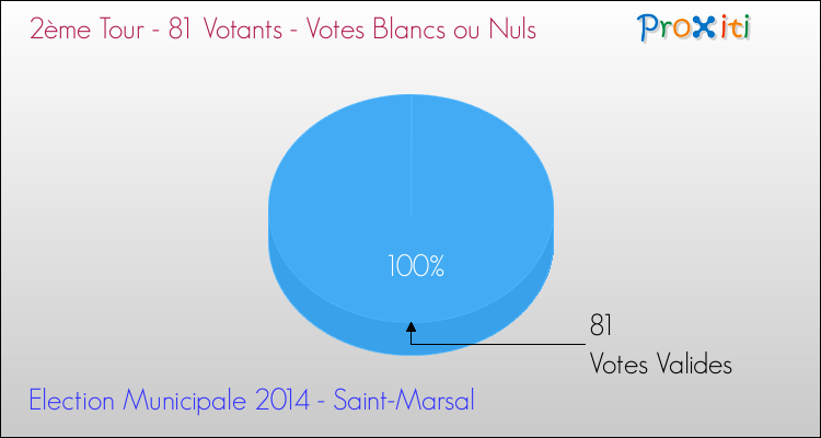 Le taux de participation à Saint-Marsal est donc de 86.17% pour ce second tour et le taux d'abstention a donc été de 13.83%.