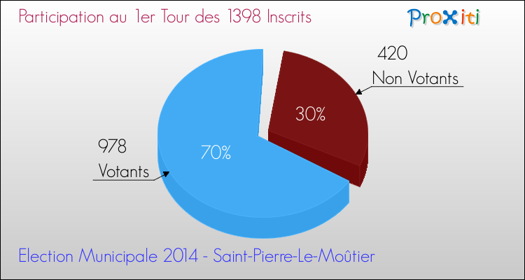 Le dimanche 30 mars dernier, pour le second tour des élections municipales à Saint-Pierre-le-Moûtier, sur les 1398 inscrits pouvant voter, 1014 votants se sont déplacés pour choisir leurs prochains élus.