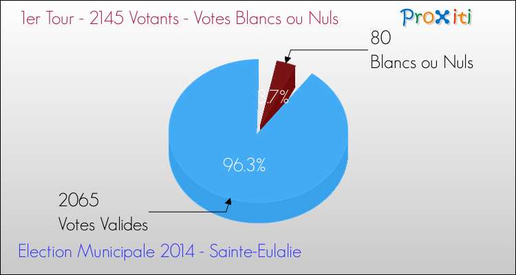 Au moment du dépouillement du scrutin, 80 bulletins ont été considérés comme blancs ou nuls (3.73%).