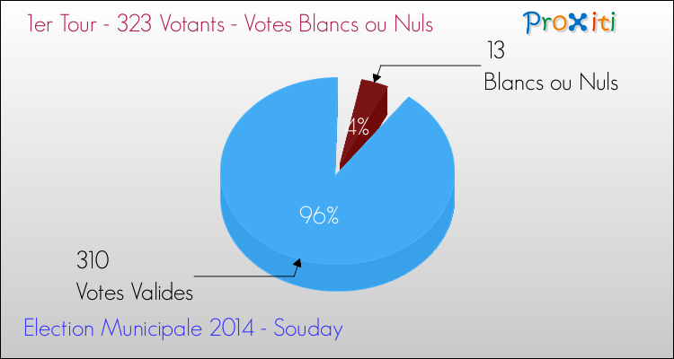 Au moment du dépouillement du scrutin, 13 bulletins ont été considérés comme blancs ou nuls (4.02%).