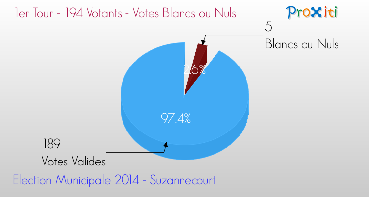 Au moment du dépouillement du scrutin, 5 bulletins ont été considérés comme blancs ou nuls (2.58%).