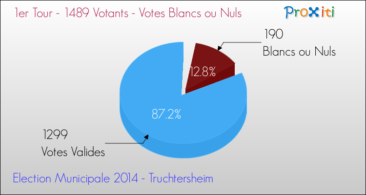 Au moment du dépouillement du scrutin, 190 bulletins ont été considérés comme blancs ou nuls (12.76%).
