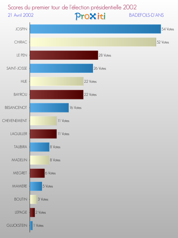 Résultats des votes à l'élection du Président de la République Française 2002 à Badefols-d'Ans