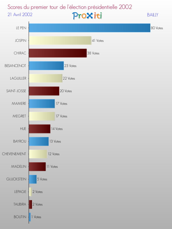 Résultats des votes à l'élection du Président de la République Française 2002 à Bailly
