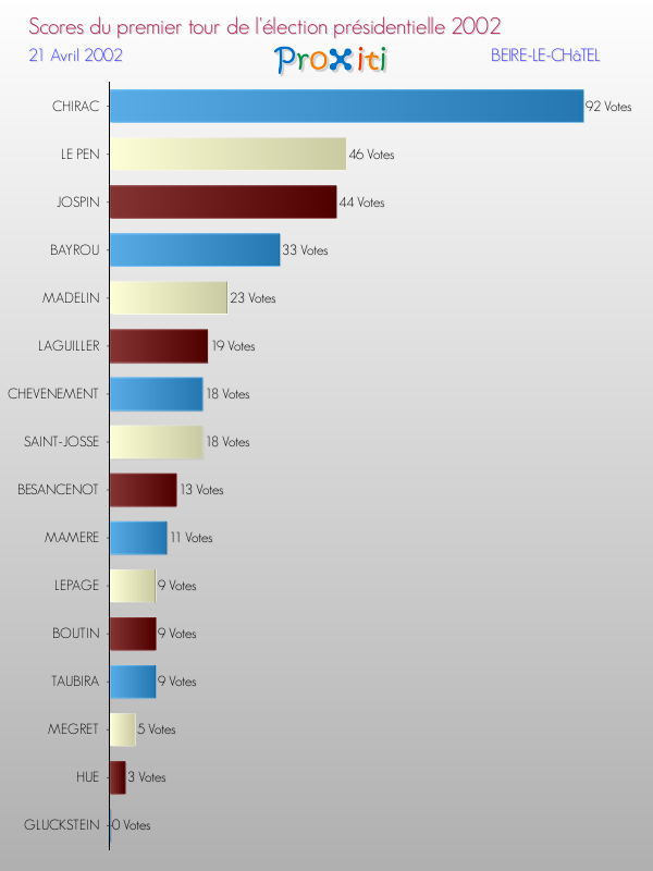 Résultats des votes à l'élection du Président de la République Française 2002 à Beire-le-Châtel