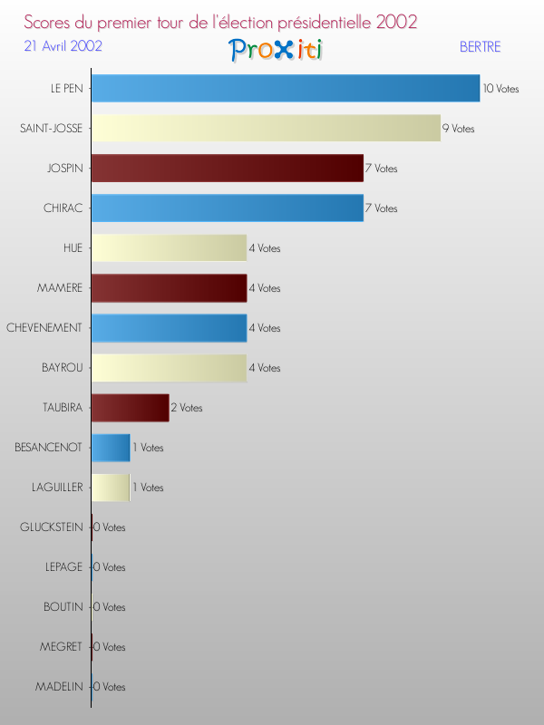 Résultats des votes à l'élection du Président de la République Française 2002 à Bertre