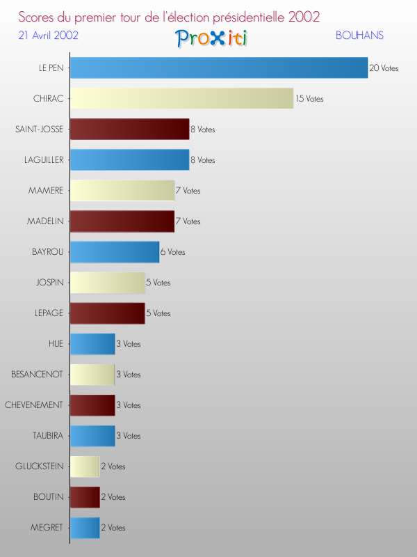 Résultats des votes à l'élection du Président de la République Française 2002 à Bouhans