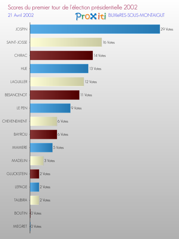 Résultats des votes à l'élection du Président de la République Française 2002 à Buxières-sous-Montaigut