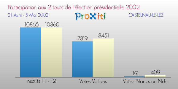 Résultats des votes à l'élection du Président de la République Française 2002 à Castelnau-le-Lez
