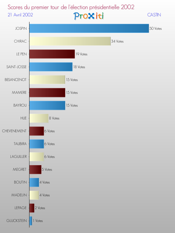 Résultats des votes à l'élection du Président de la République Française 2002 à Castin
