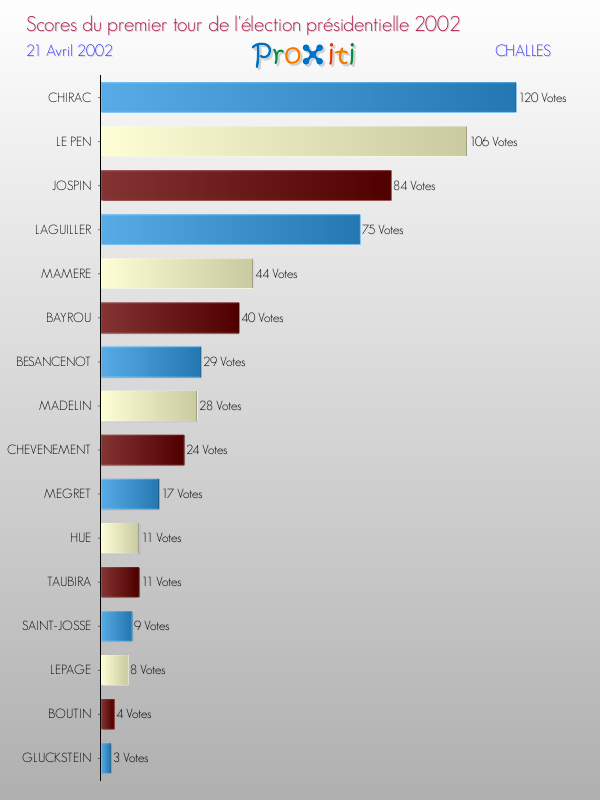 Résultats des votes à l'élection du Président de la République Française 2002 à Challes