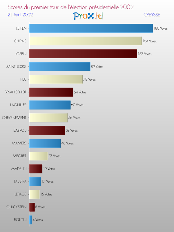 Résultats des votes à l'élection du Président de la République Française 2002 à Creysse