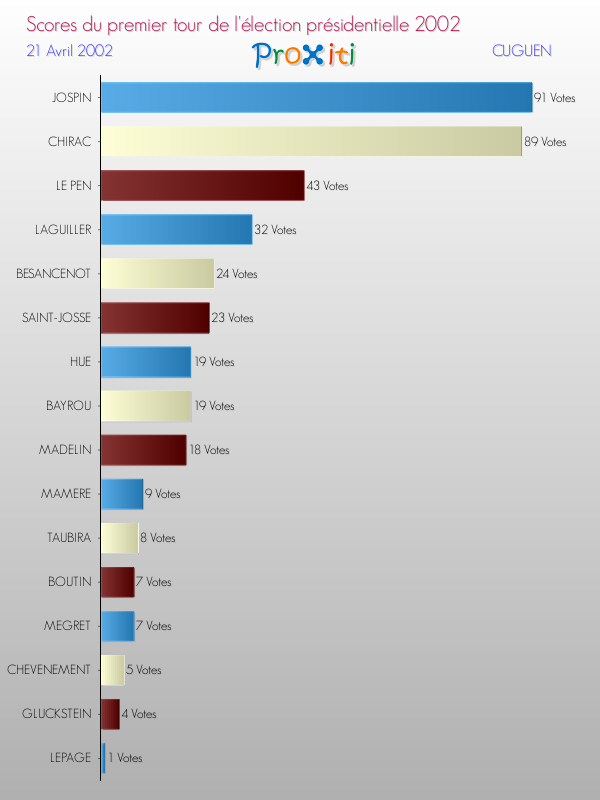 Résultats des votes à l'élection du Président de la République Française 2002 à Cuguen