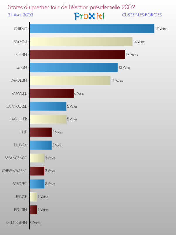 Résultats des votes à l'élection du Président de la République Française 2002 à Cussey-les-Forges