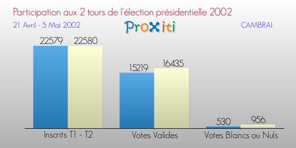 Résultats des votes à l'élection du Président de la République Française 2002 à Cambrai