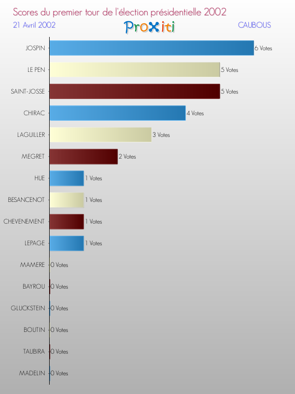 Résultats des votes à l'élection du Président de la République Française 2002 à Caubous